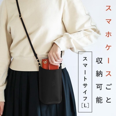 74スマートサイフ Lサイズ スマホポーチ HUKURO 栃木レザー 全6色【オレンジ】