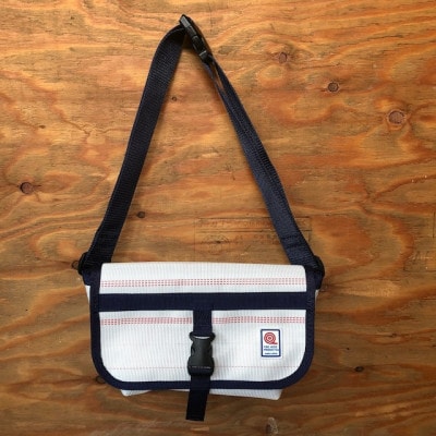 7【SUWAプレミアム】ボディバッグ ホワイト(M)(パイピングカラー:紺)