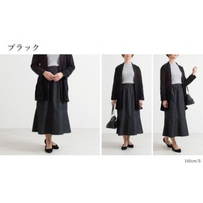 21三河木綿 フレアスカート M /ブラック_【G0669】