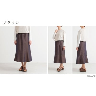 22三河木綿 フレアスカート M /ブラウン_【G0669】