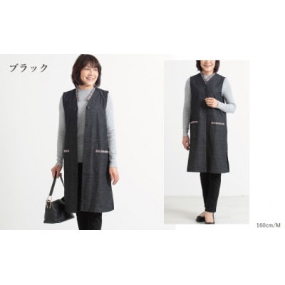 31三河木綿 ロングベスト L /ブラック_【G0671】