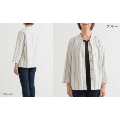 37新織 三河木綿 ブラウス M/ブルー_【G0544】