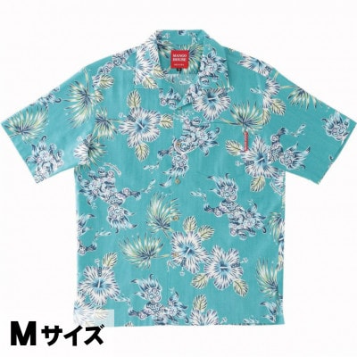 【マンゴハウスのかりゆしウェア】メンズ Mサイズ ターコイズブル スプラッシュシーサー 251173
