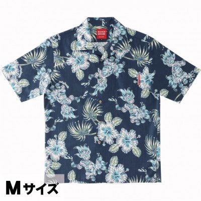 【マンゴハウスのかりゆしウェア】メンズ Mサイズ ネイビー いちゃりばシーサーパイン 251135