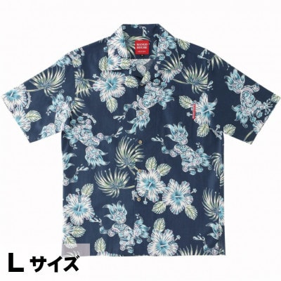 【マンゴハウスのかりゆしウェア】メンズ Lサイズ ネイビー あっちゃめシーサー 251162