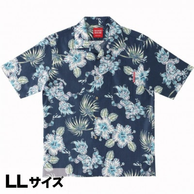 【マンゴハウスのかりゆしウェア】メンズ LLサイズ ネイビー 寿ゆいまーるシーサー 251170