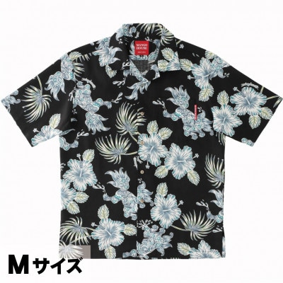 【マンゴハウスのかりゆしウェア】メンズ Mサイズ ブラック スプラッシュシーサー 251173