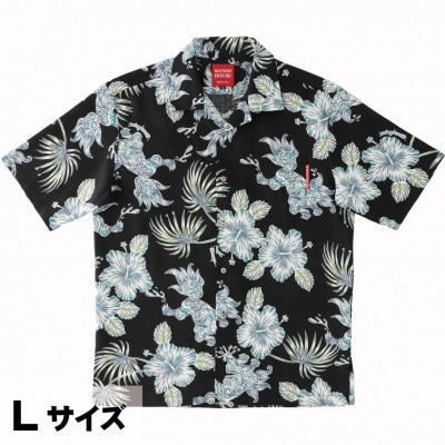 【マンゴハウスのかりゆしウェア】メンズ Lサイズ ブラック 龍柱デイゴ 251161
