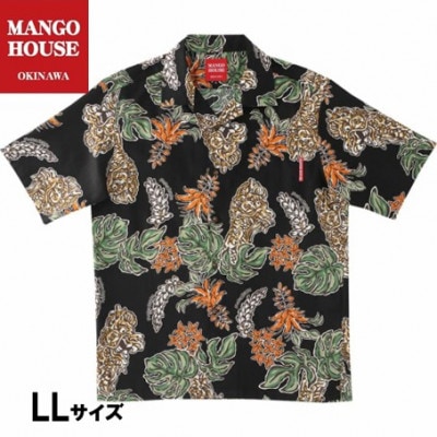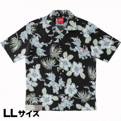 【マンゴハウスのかりゆしウェア】メンズ LLサイズ ブラック 龍柱デイゴ 251161
