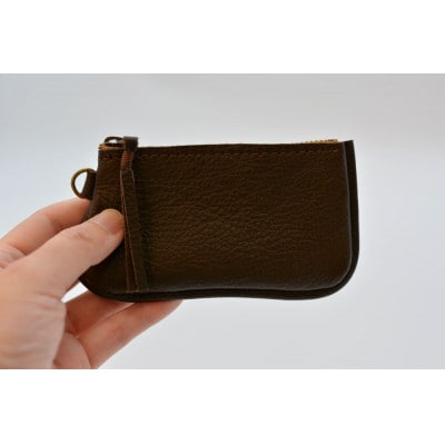 牛革を使用した大きさの異なるファスナー式ケース2個セット