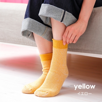 22温フィーユ 靴下 レディース メンズ 暖かい 厚手 ルームソックス 日本製:27~29cm イエロー