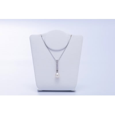 6.5mmのあこや本真珠とキュービックジルコニアのチャームのダブルチェーンのペンダントネックレスです