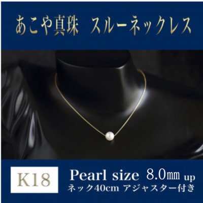 K18あこや真珠スルーネックレス(40cm)アジャスタ付 真珠サイズ8.0mmUP