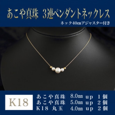 K18あこや真珠(3連)ペンダントネックレスをお届けします。