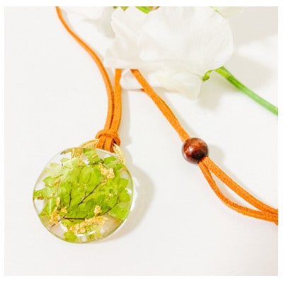 メラスフェルラとユーフォルビアの押し花ネックレス