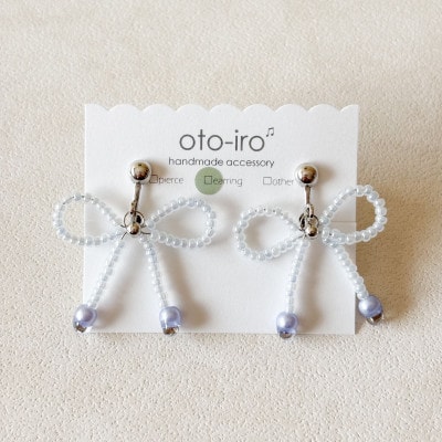 88きゅっと結んだビーズリボンのピアス【ribbon/クリアベージュ】