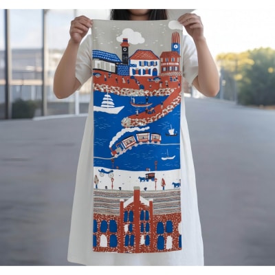 【横浜柄】横浜捺染で染色した手ぬぐい【赤×青】