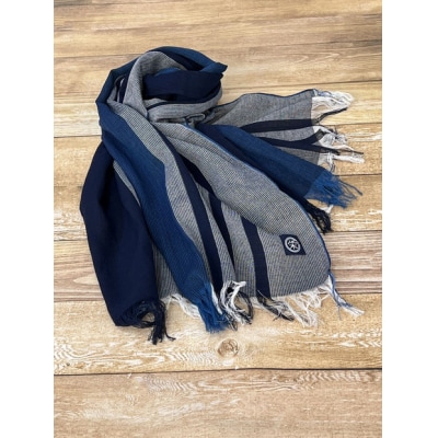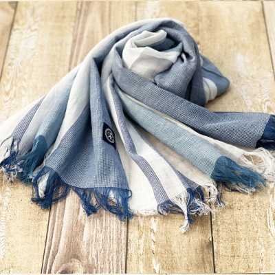 9徳島市産 正藍先絲染 和田縞ストール 【明藍縞】【HZ001VC04】