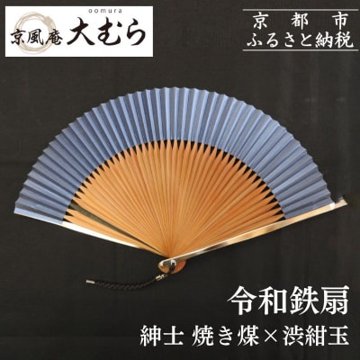 74【京風庵大むら】京扇子 令和鉄扇~plusα~(扇面紺・中骨茶)|京都 扇子 伝統工芸 高級