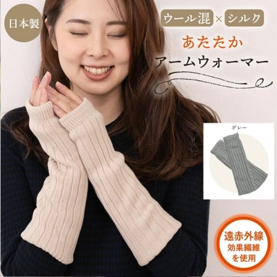 15【シノワズリーモダン京都】日本製 ウール&シルク アームウォーマー グレージュ