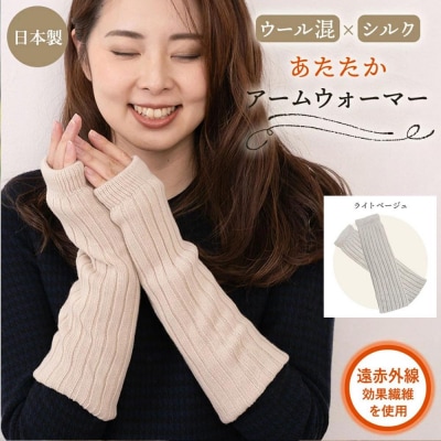 8【シノワズリーモダン京都】日本製 ウール&シルク アームウォーマー ライトベージュ