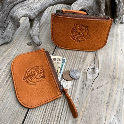 34【広島ジビエレザー×広島東洋カープ】東広島産鹿革使用☆ファスナーポーチ☆ヴィンテージキャメル