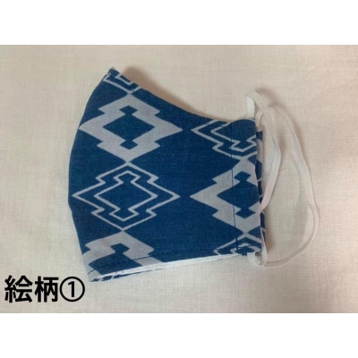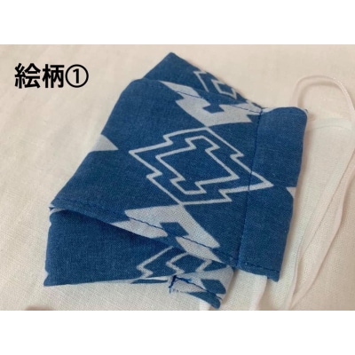 71河内木綿文様藍染、抗菌ガーゼ仕様マスク(ボックス型)【絵柄1】(A200)