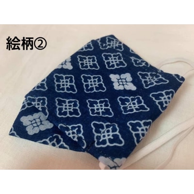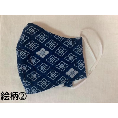 72河内木綿文様藍染、抗菌ガーゼ仕様マスク(ボックス型)【絵柄2】(A200)