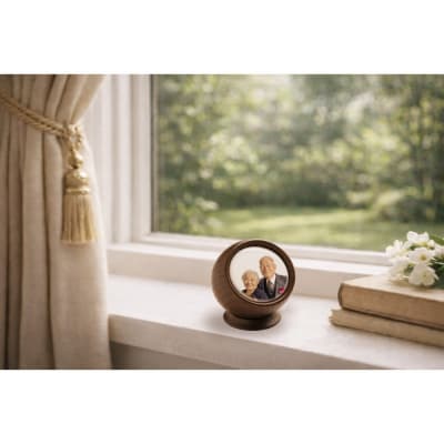 27手元供養にも使える写真陶板付き宝物入れ「たまてまり」
