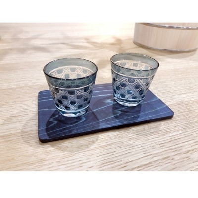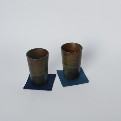 樹齢100年以上の県産杉を徳島藍天然灰汁醗酵建本藍染、セラウッド塗装仕上げ上φ7.8下φ5.8H12(cm)藍染コースター付2個セット×1