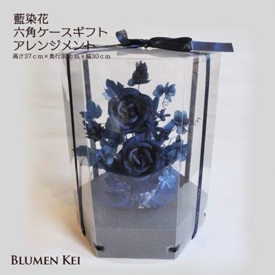 7藍染花 六角ケースギフトアレンジメント【DA004】