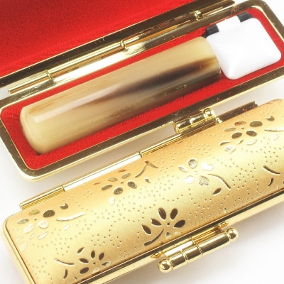 【実印や銀行印に使用可能】オランダ水牛と金花ケースの印鑑1本セット 男性・女性に対応