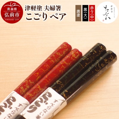 津軽塗 夫婦箸 こごり 唐塗 黒(大)・赤々(中)ペア|24_tnk-120101