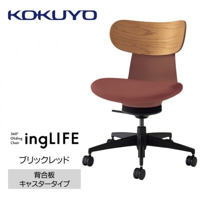 コクヨチェアー イングライフ(ブリックレッド)/背合板・肘無し・フローリング用(Vキャスター)