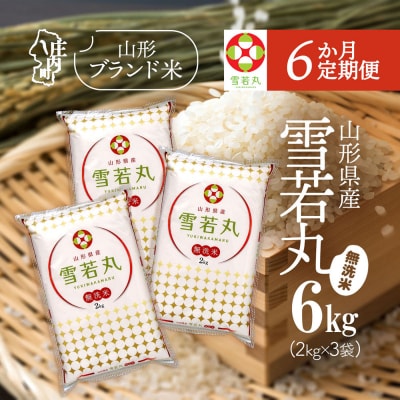 6か月間毎月中旬に山形県産雪若丸無洗米2kg×3袋をお届けします。※5月から10月までの配送となります。