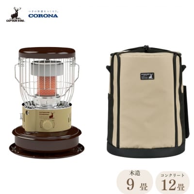 57[キャプテンスタッグ×コロナ] 石油ストーブ(BE/BR) ケース付 9~12畳 【136S005】