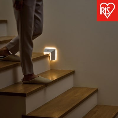 センサーが人の動きを感知して自動的に点灯するアイリスオーヤマの乾電池式LEDセンサーライトです。