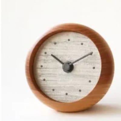 柔らかな形の木の質感と、天然石を砕いた岩絵具の色彩が融合した、色を愉しむオブジェのような置時計です。