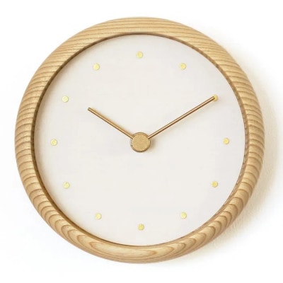 柔らかな形の木の質感と、天然石を砕いた岩絵具の色彩が融合した、色を愉しむオブジェのような置時計です