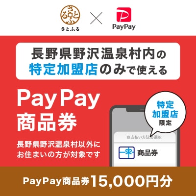 長野県野沢温泉村 PayPay商品券(15,000円分)※地域内の一部の加盟店のみで利用可