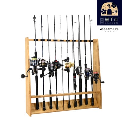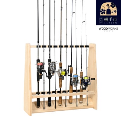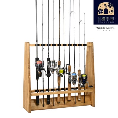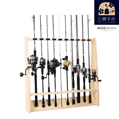 14ロッドスタンド10本掛け+リールスタンド片面Mサイズ 【本体:ナチュラル フェルト:ブラック】