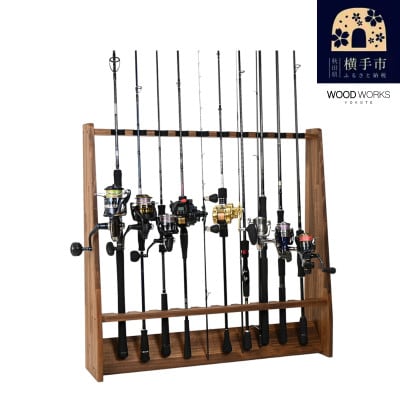 13ロッドスタンド10本掛け+リールスタンド片面Mサイズ 【本体:ブラウン フェルト:ブラック】