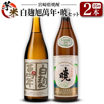 宮崎県 芋・米焼酎「白麹旭萬年 720ml」&「暁 900ml」 25度 2本セット