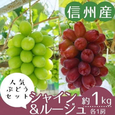 76【信州産】シャインマスカット&クイーンルージュ(R) 秀品 各1房(計約1kg)9月上旬より順次発送