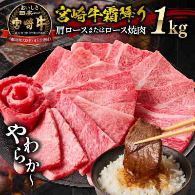 51宮崎牛霜降り 肩ロースまたはロース 焼肉 1kg