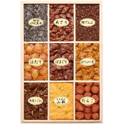 老舗高級佃煮店「銀座新之助貝新」の佃煮9種印籠箱詰合せ。