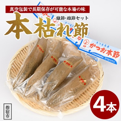 日本有数の生産地、指宿山川産のかつお節「鰹本枯れ節」雄節×2、雌節×2の4本セットです。
