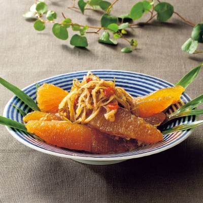 北海道近海で獲れたするめいかと、数の子、がごめ昆布を特製醤油で漬け込んだ松前漬です。