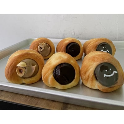 2秋川牛キーマカレーパン3個+クリームパン(カスタード)3個