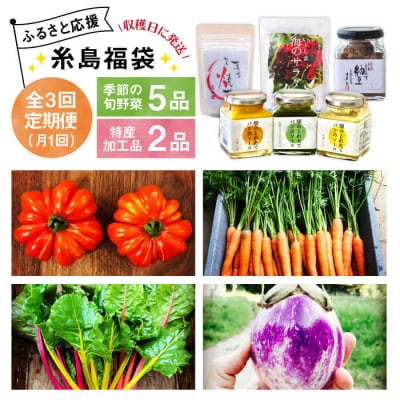 62【全3回定期便】朝採りオーガニック旬野菜5品+糸島産 大ヒット特産加工品2品セット[AGE029]